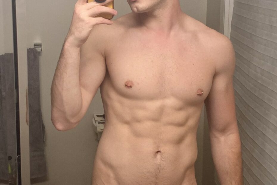 Nude guy with a ripped muscular body and a shaved cut cock taking a self-picture in the mirror. Crazy abs on this hot boy